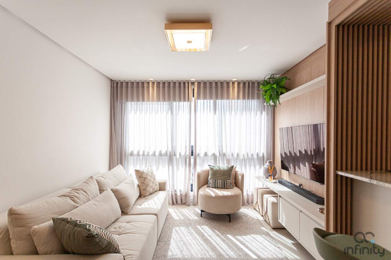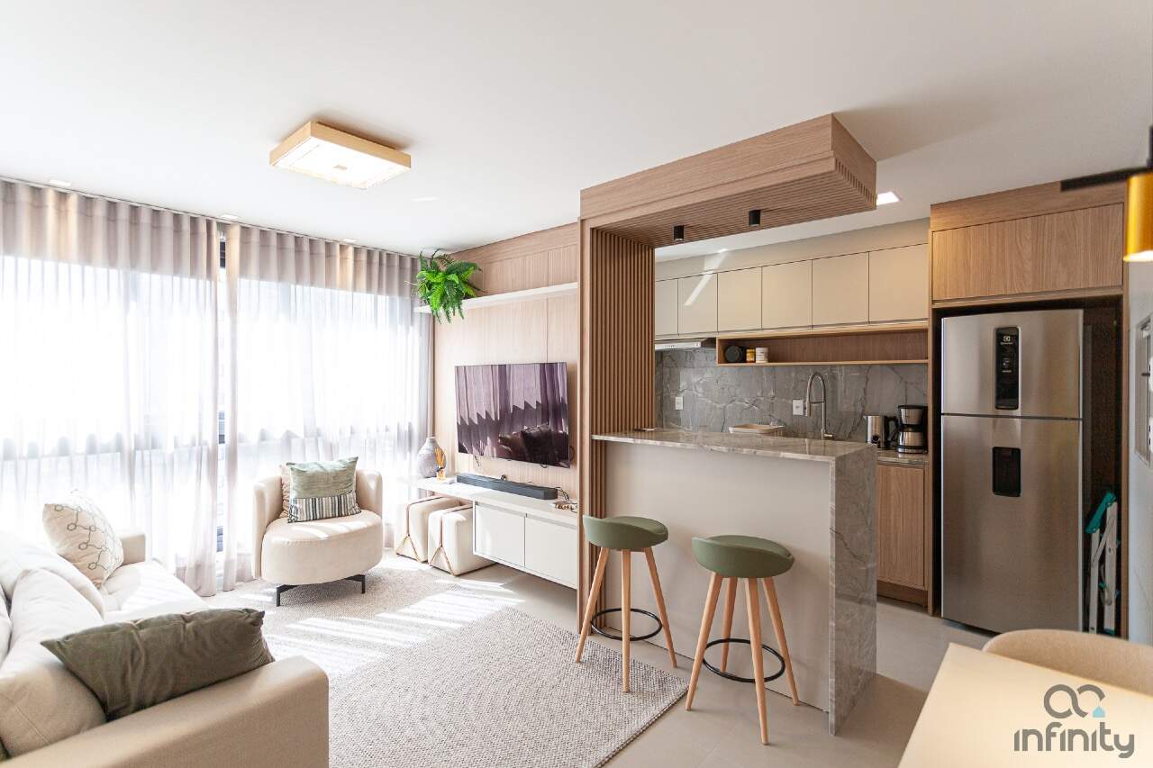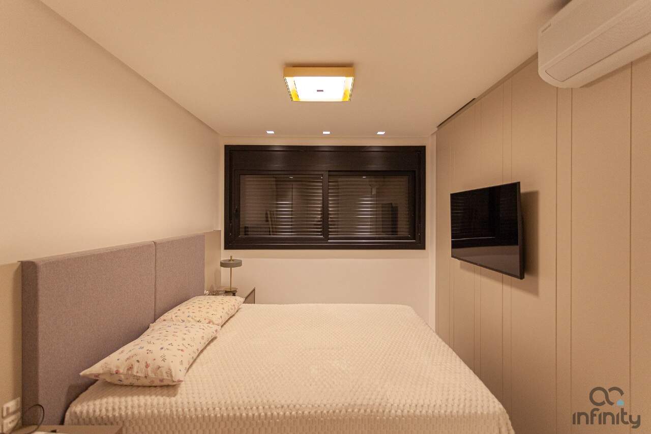 Infraestrutura completa, no terraço uma piscina com borda infinita, academia, brinquedoteca e espaço para festas.