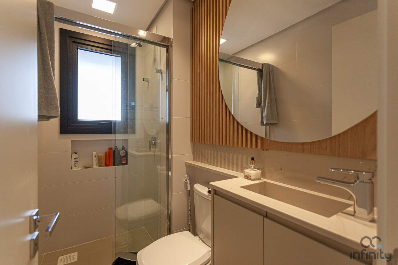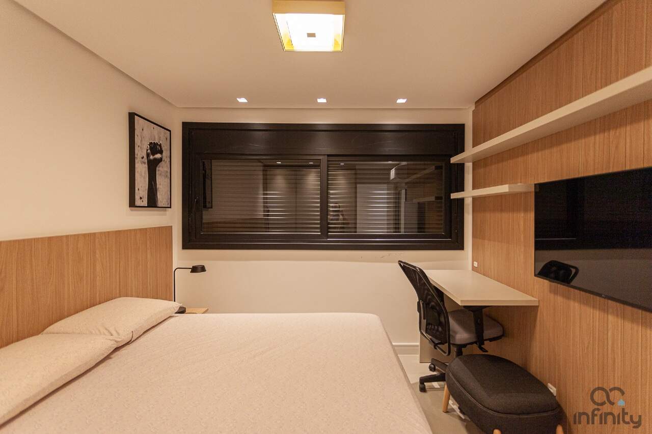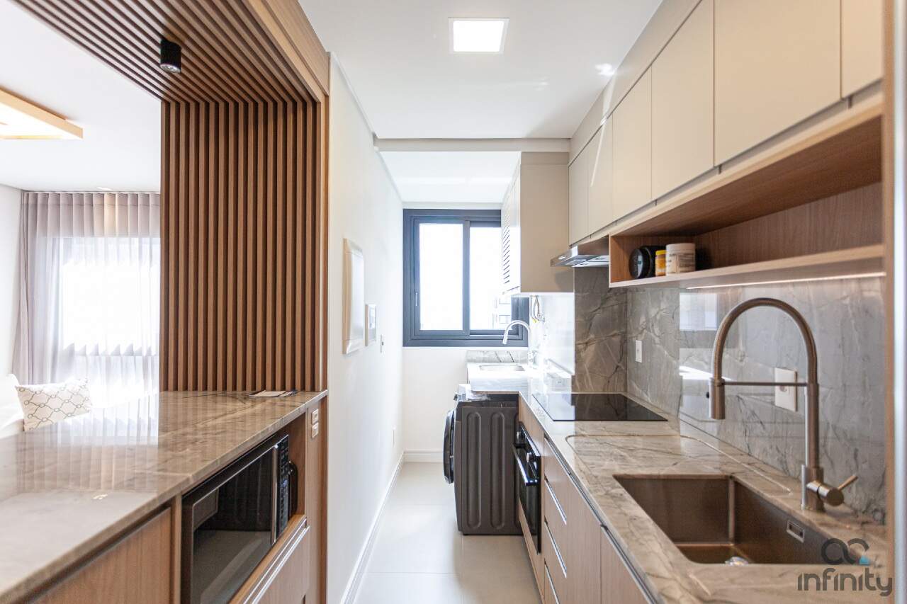 Infraestrutura completa, no terraço uma piscina com borda infinita, academia, brinquedoteca e espaço para festas.
