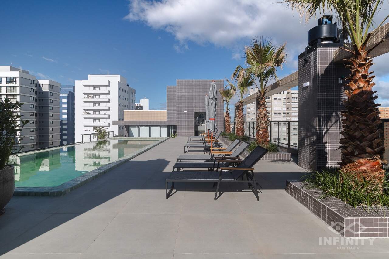 Infraestrutura completa, no terraço uma piscina com borda infinita, academia, brinquedoteca e espaço para festas.