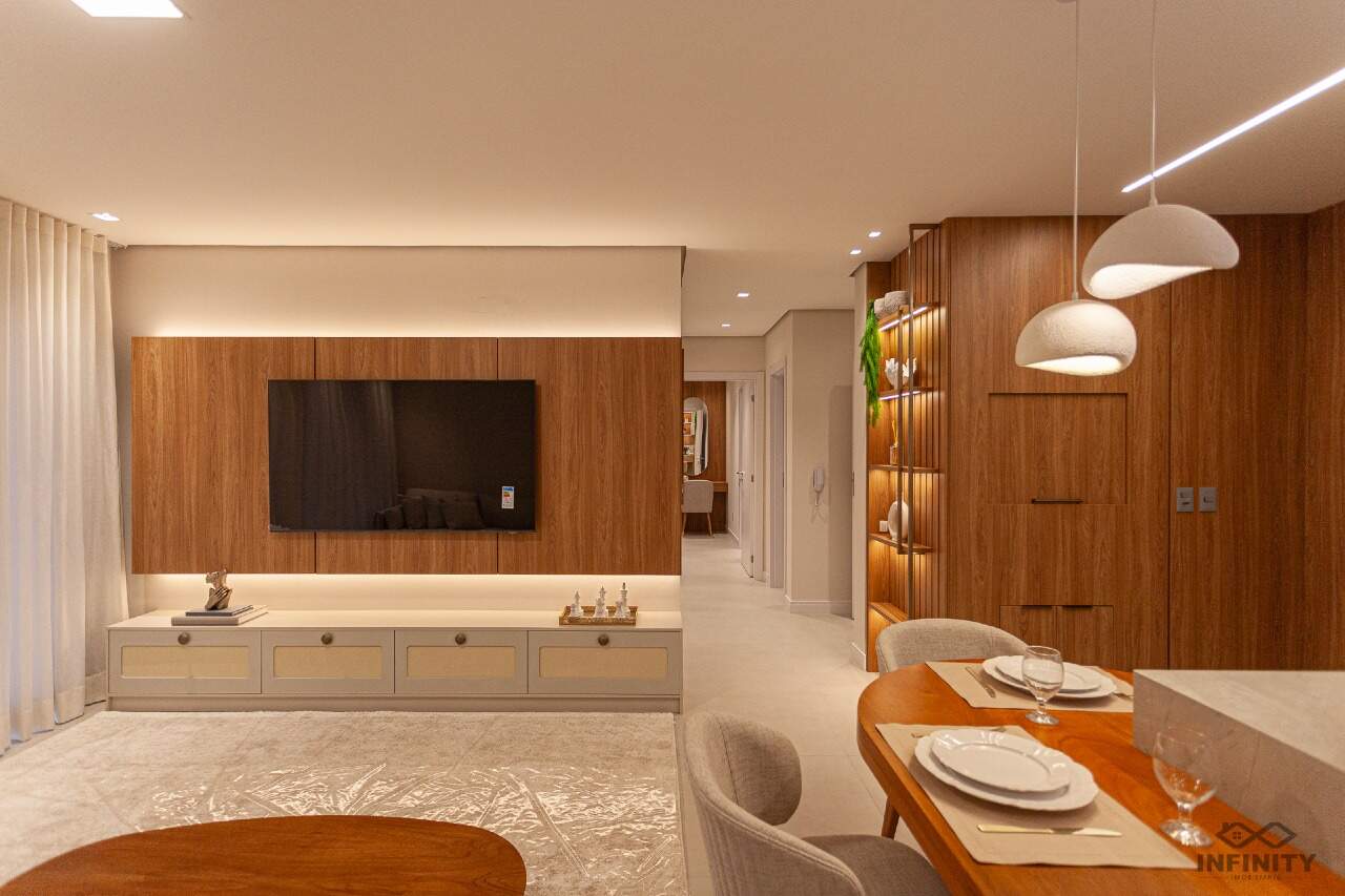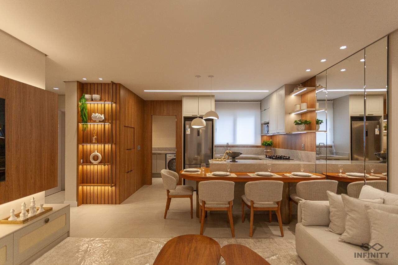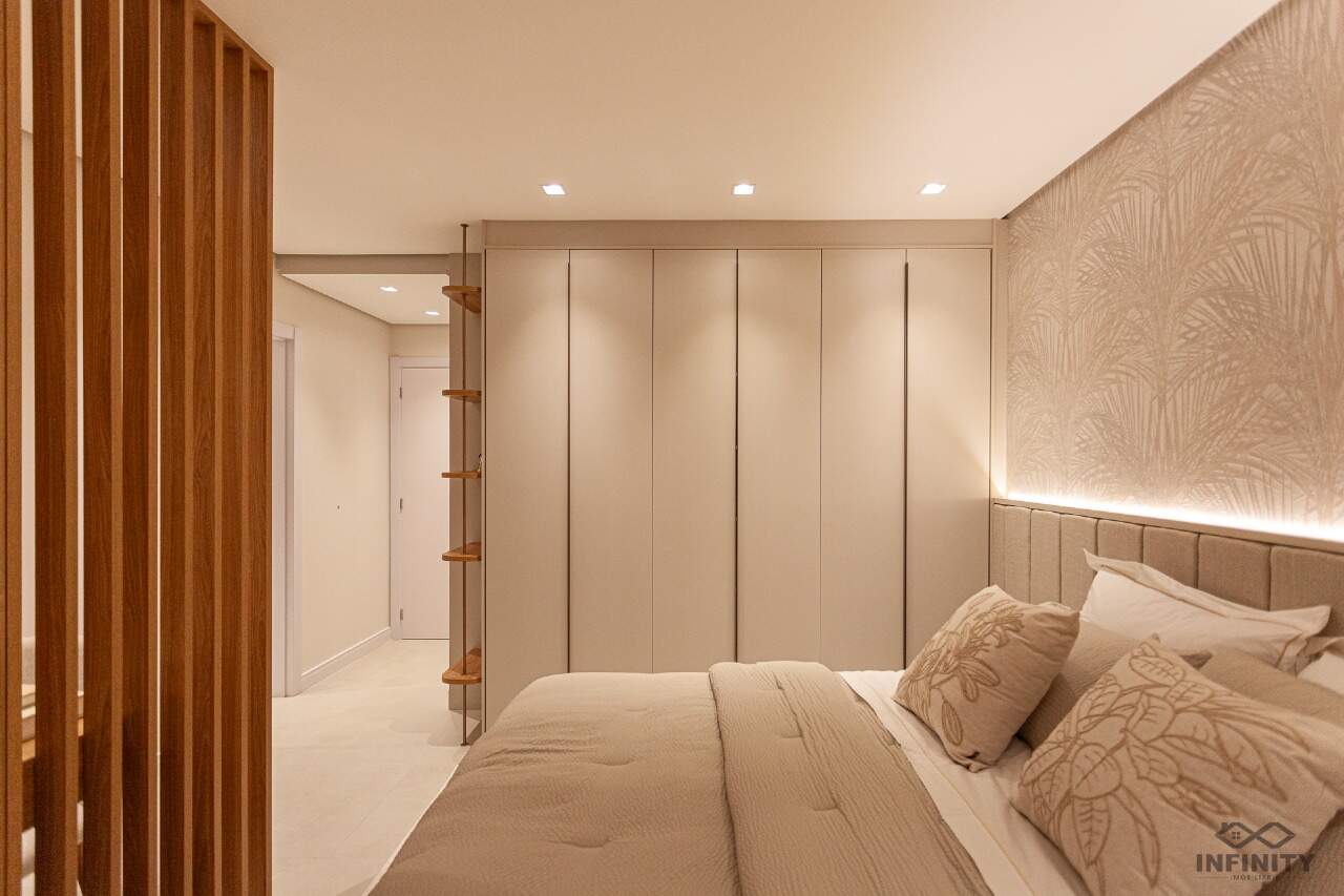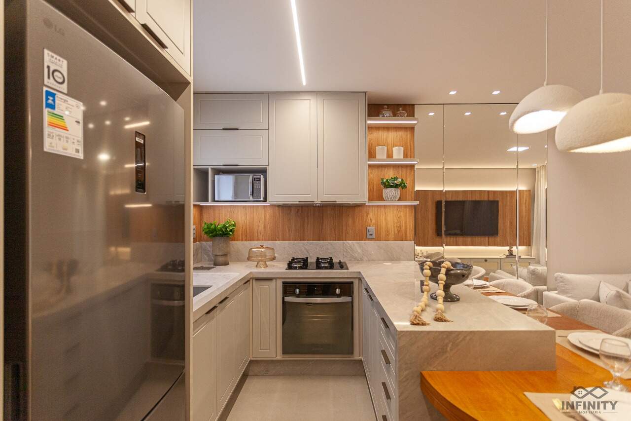 Apartamento finamente mobiliado e decorado, com duas suítes e um lavabo.
