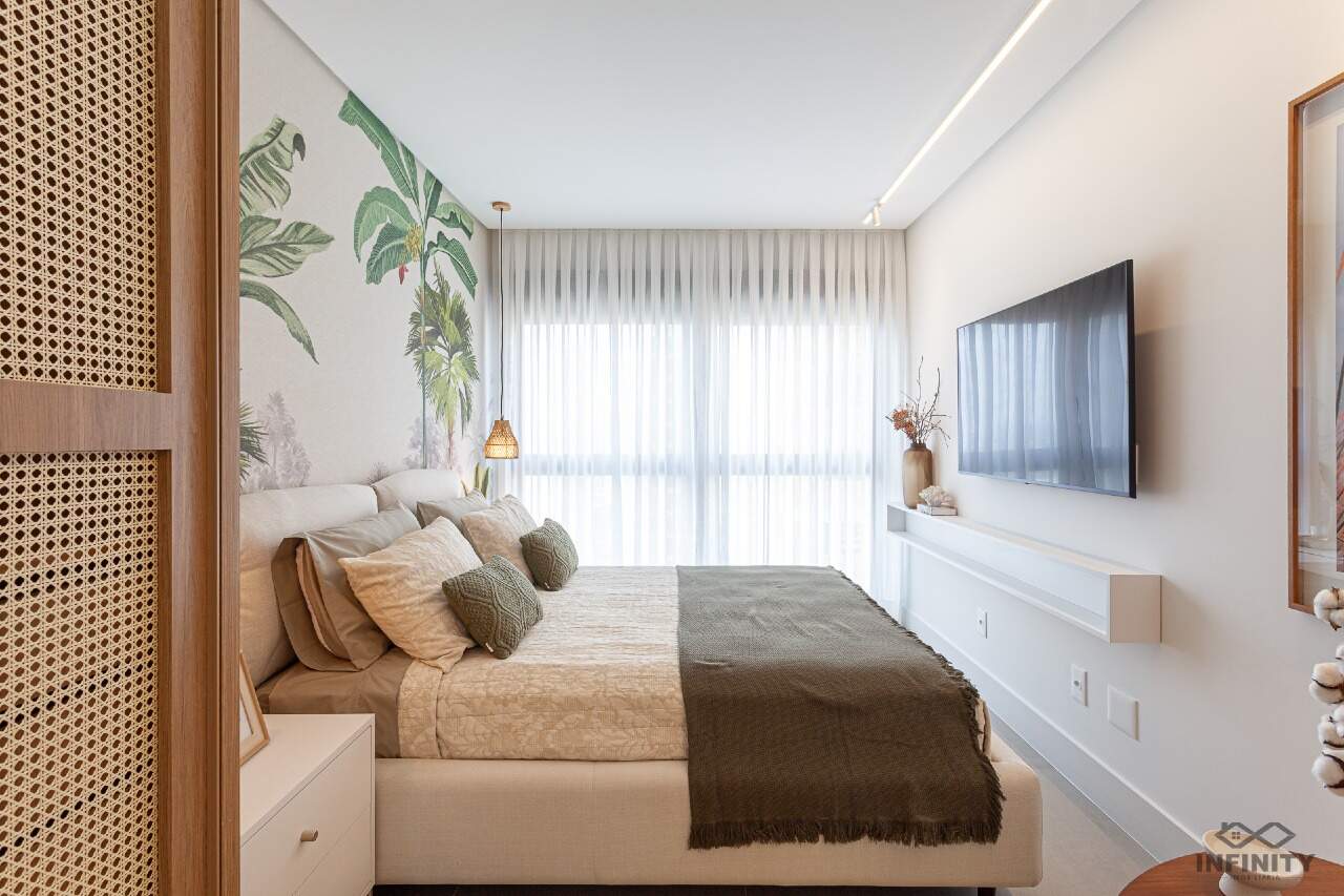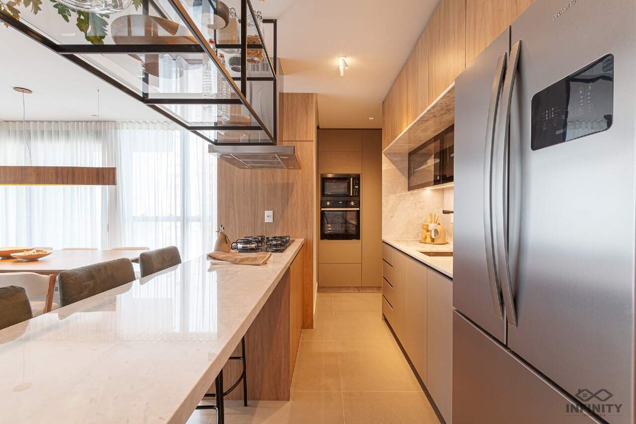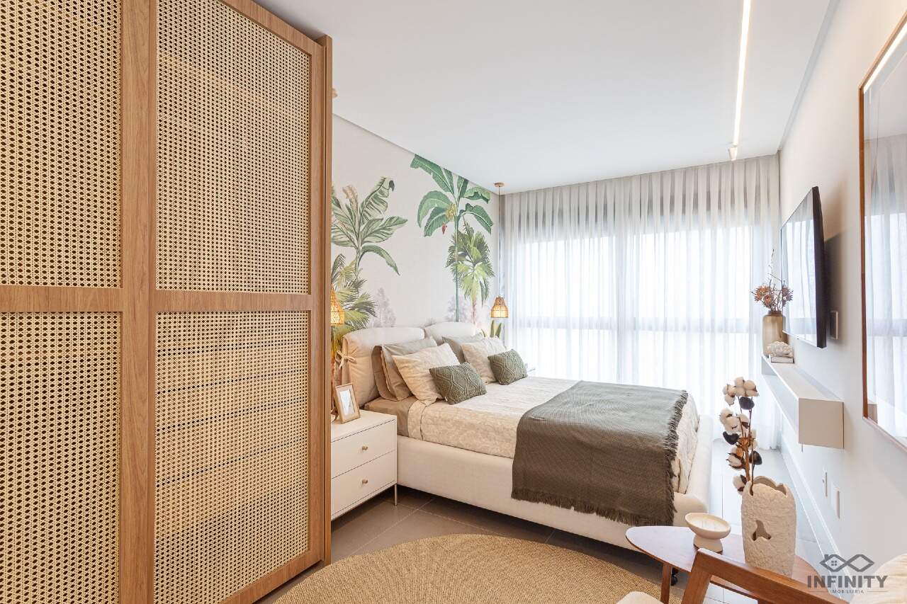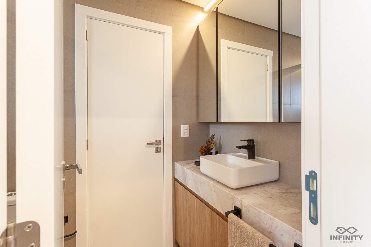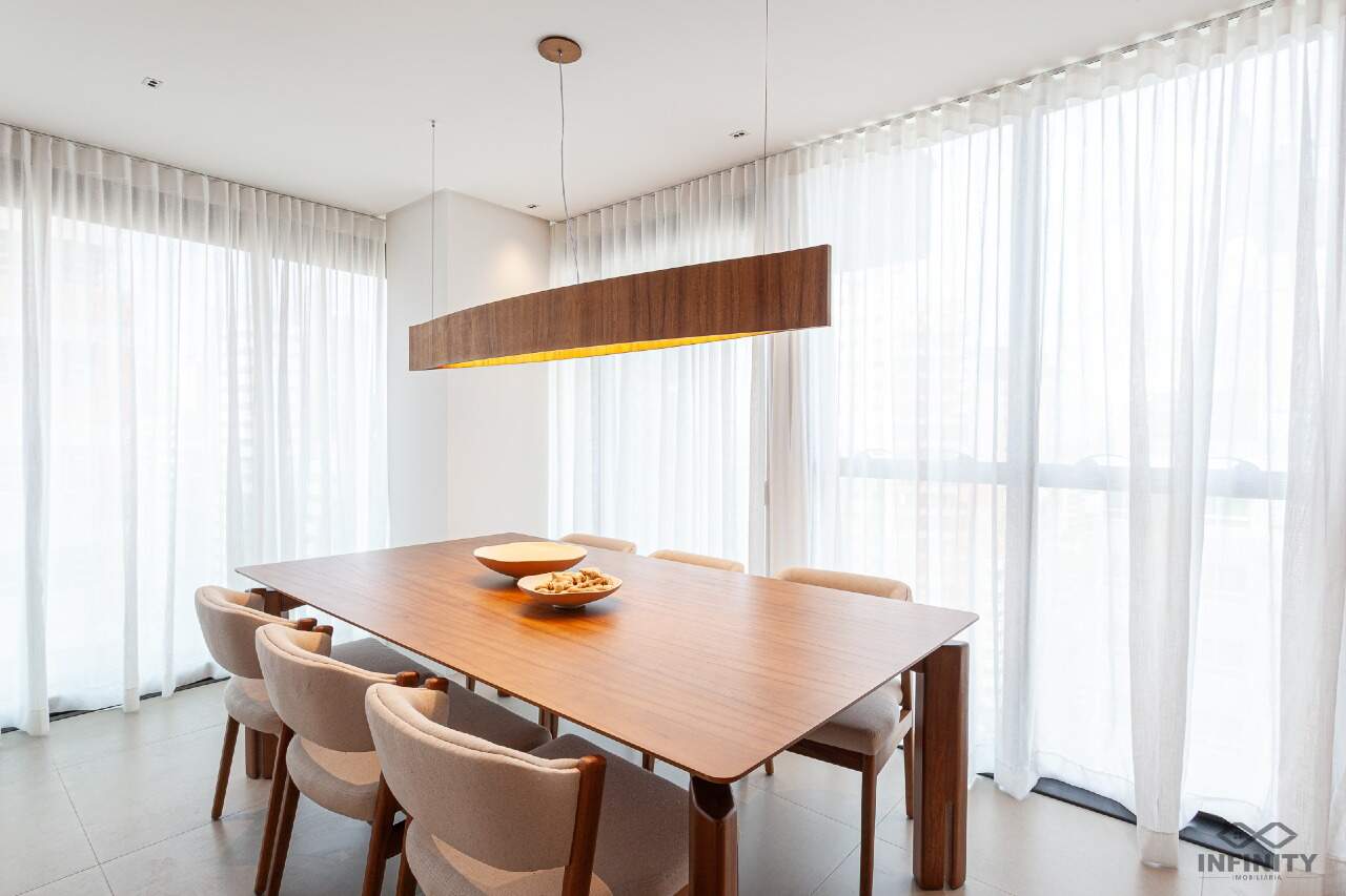 O ritmo da vida urbana se encontra com a leveza e a qualidade de vida da praia, todos os ambientes equipados, decorados e mobiliados. O hall de entrada com moveis da Saccaro.