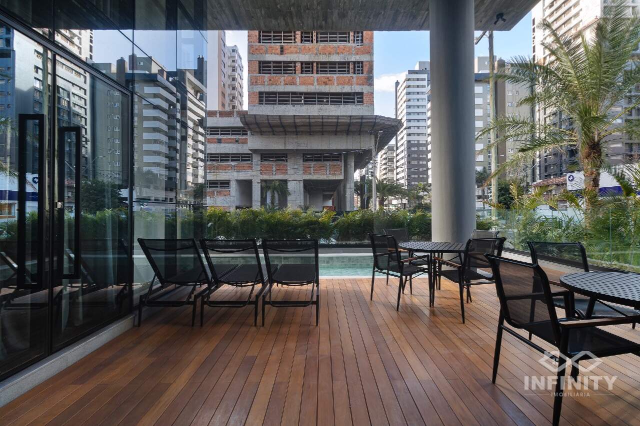 O ritmo da vida urbana se encontra com a leveza e a qualidade de vida da praia, todos os ambientes equipados, decorados e mobiliados. O hall de entrada com moveis da Saccaro.
