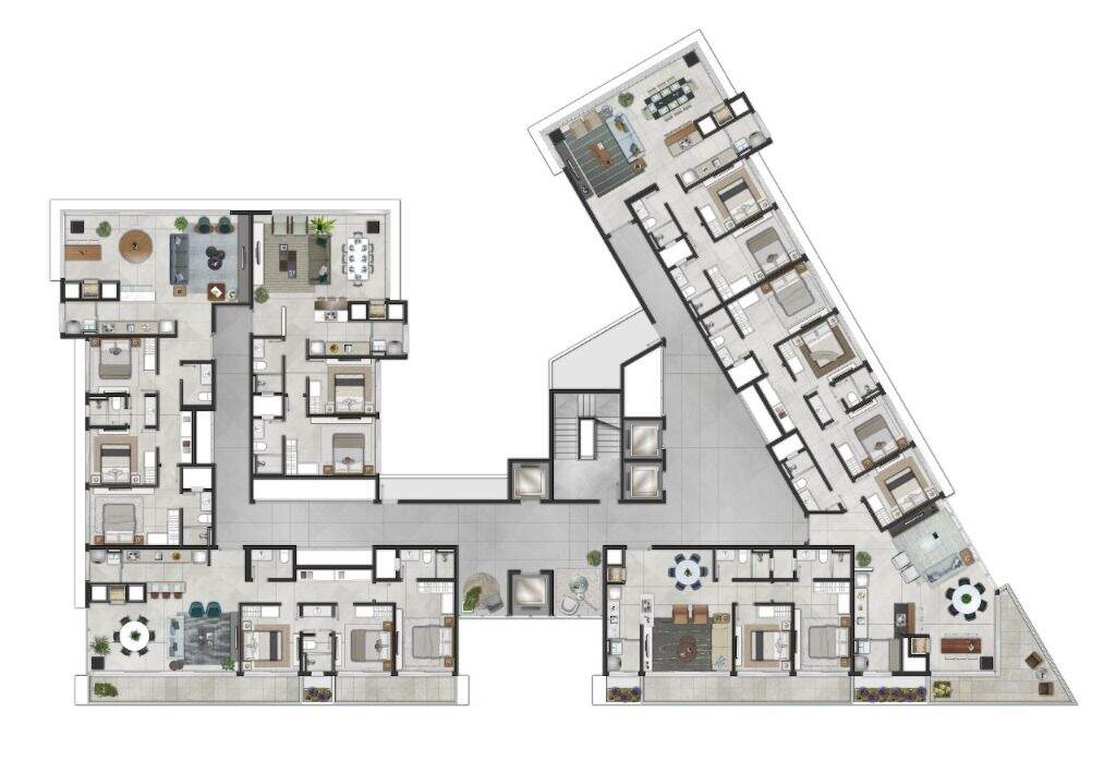 Uma arquitetura de imponência ornamentada com vegetação. A flexibilidade de escolhas temos Mirage, apartamentos de 2, 3 e 4 dormitórios. Com 06 diferentes metragens e plantas.