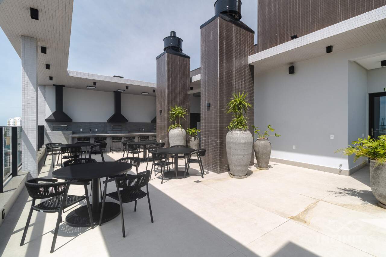Academia, piscina aquecida, salão de festas, terraço gourmet e terraço ao ar livre.