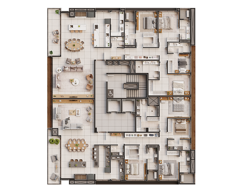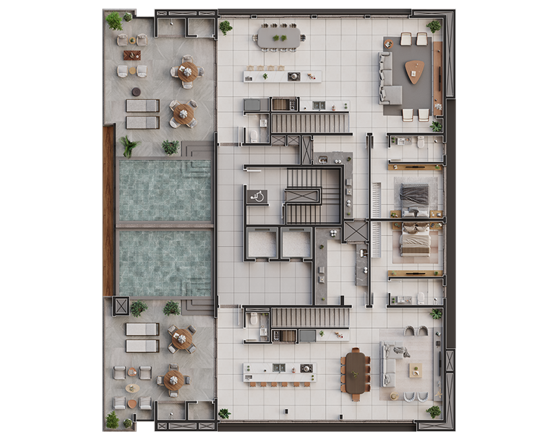 Um projeto desta envergadura, possui mais de 700 metros quadrados de área de lazer completa e entregues mobiliadas.
