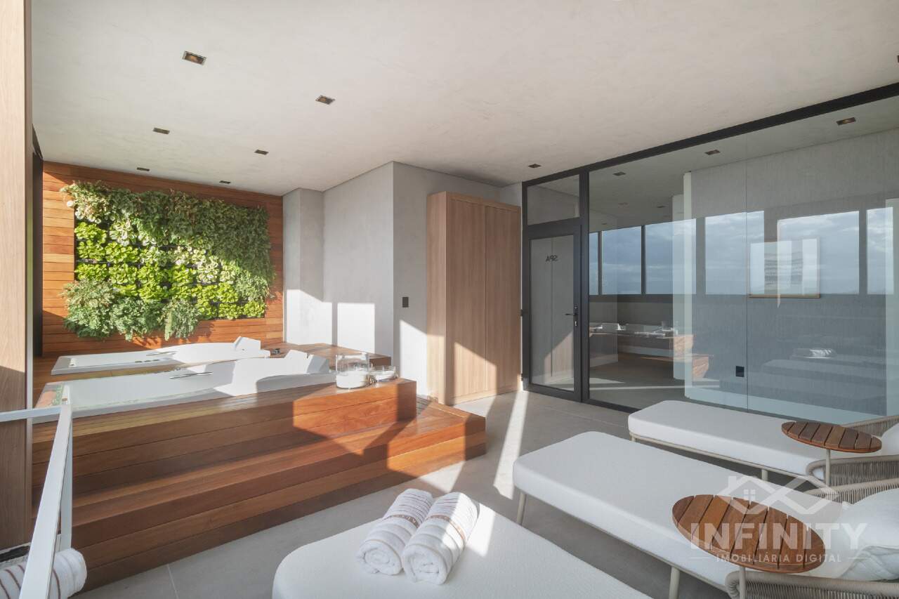 Cada pavimento tem 02 unidades, coloquei a infraestrutura com piscina, salão de festas e academia lá no terraço, naquela vista permanente pra estrela do show… o mar!