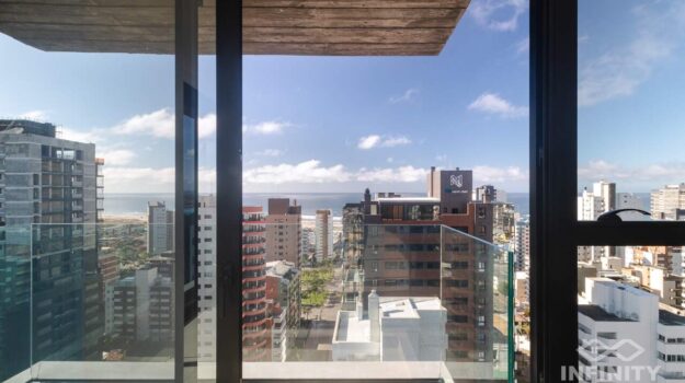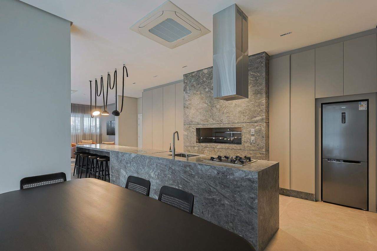 O ritmo da vida urbana se encontra com a leveza e a qualidade de vida da praia, todos os ambientes equipados, decorados e mobiliados. O hall de entrada com moveis da Saccaro.