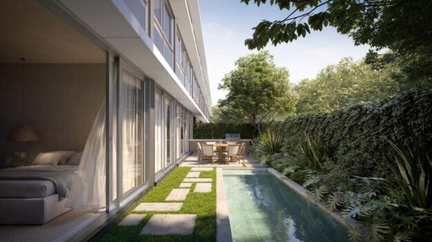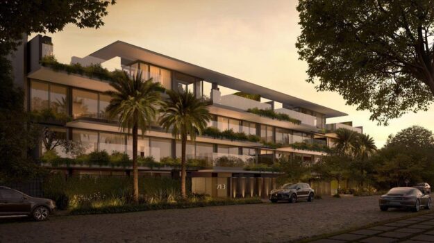 Terreno com área de 1.122 m2; 2 halls de entrada, sendo 1 para cada 5 residências para maior privacidade; Elevador com capacidade para 8 pessoas da marca ThyessenKrup; Fachada contemporânea com lâminas em estrutura ventilada revestida com Laminam, material nobre importado da Itália, e grandes vãos envidraçados; Residências com 3 suítes, de 173 m2 a 344 m2 de área privativa; Projeto de paisagismo biofílico, com conexão com a natureza; Painéis fotovoltaicos para geração de energia; Materiais de alto padrão.