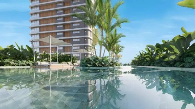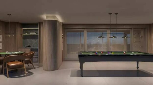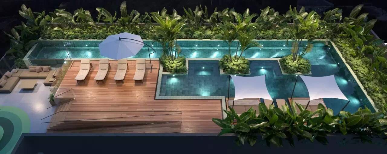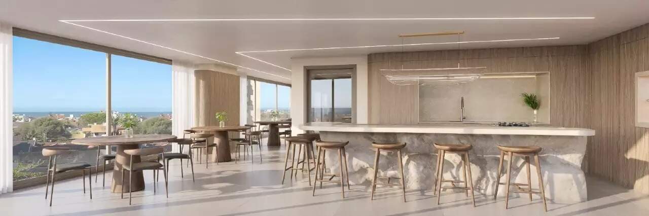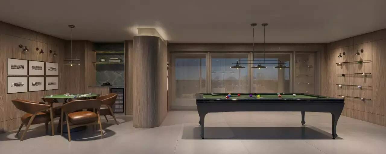 Apartamentos com 221m2 privativos com 4 suítes. Mobiliário Saccaro em toda área de uso comum.