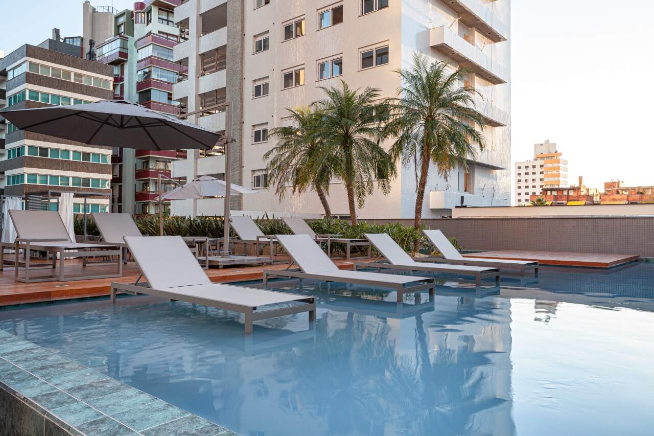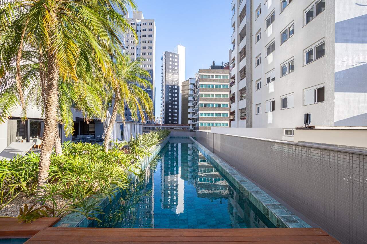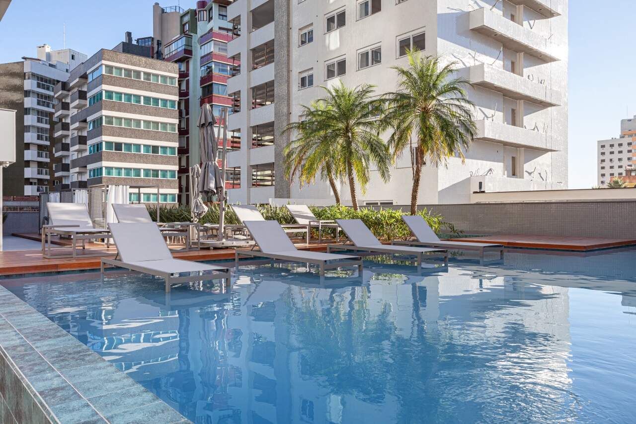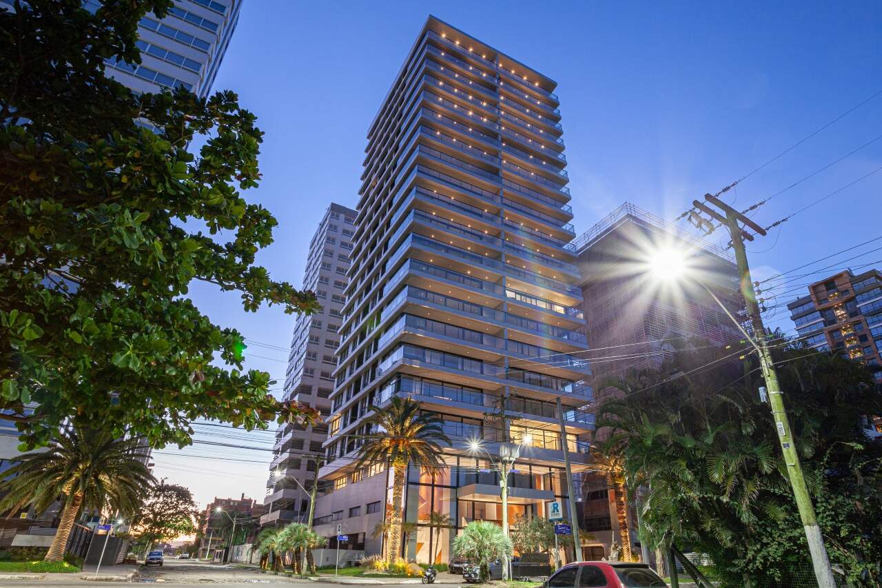 Fachada com sistema de luzes moonlight 100% LED, hall de entrada com pé direito triplo, serviço de consierge, piscina aquecida com raia semi-olímpica, área de relaxamento com spa e sauna.