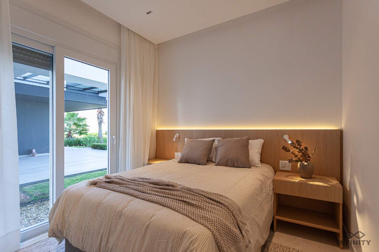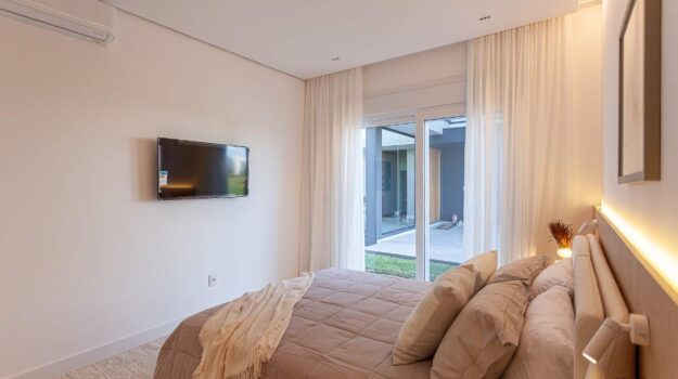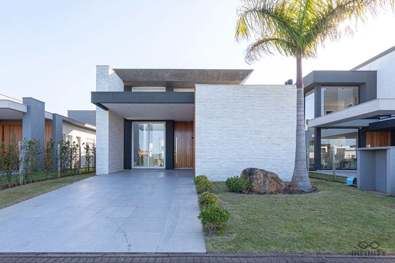 Com posição solar frente Leste, a casa é térrea, de arquitetura contemporânea e pé-direito duplo que valoriza amplitude e iluminação natural.