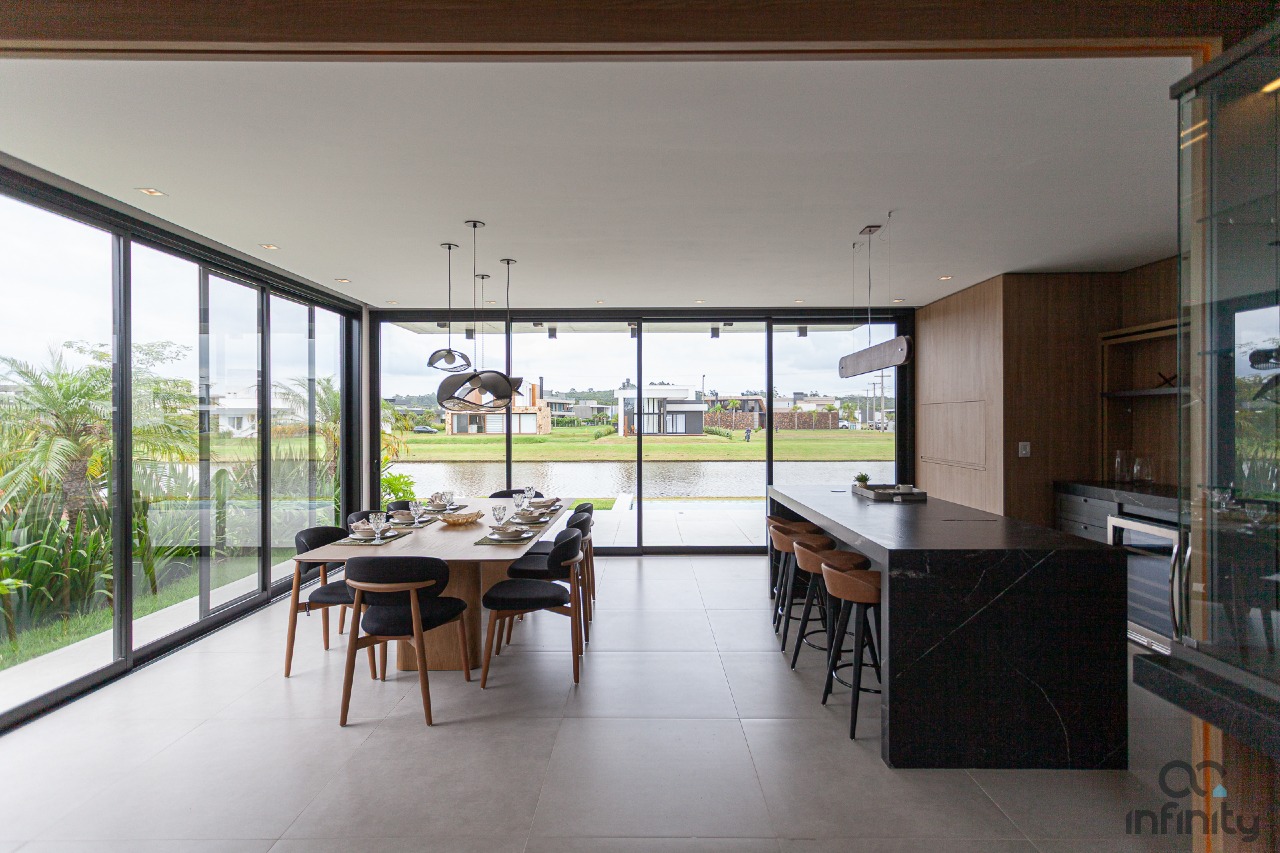 Um lar com 4 suítes, em 380 metros privativos. Casa com pátio e fundos lago, para que momentos sejam eternizados ou especiais não somente no verão, mas também no inverno.
