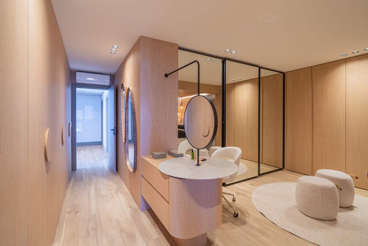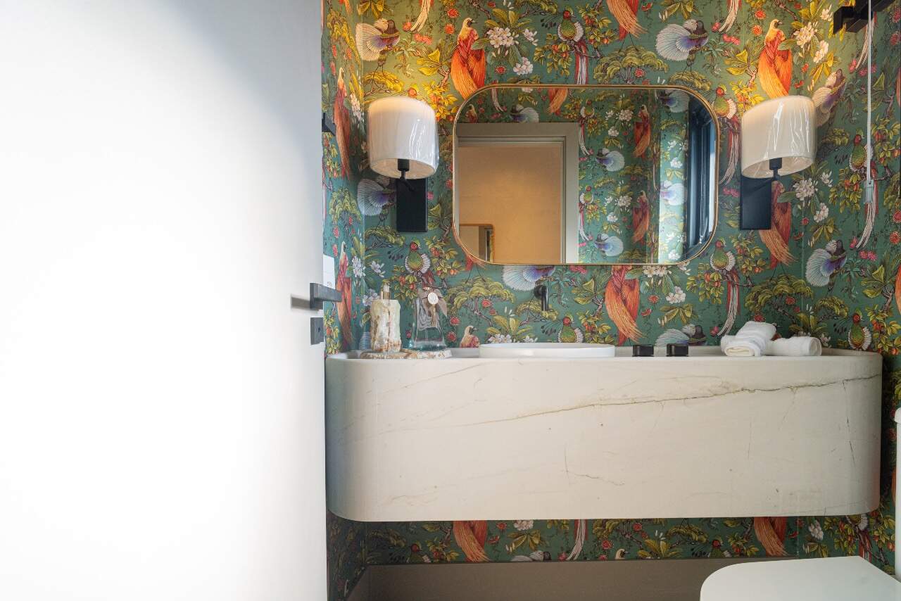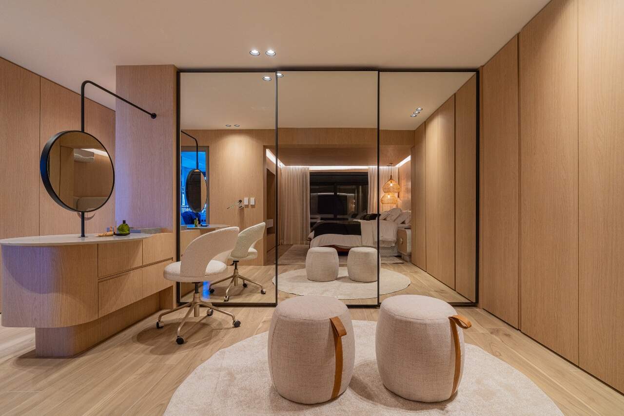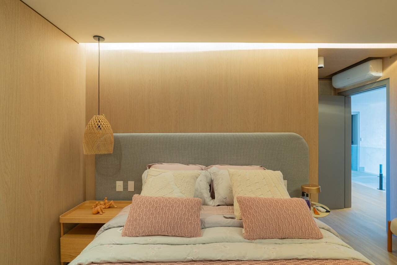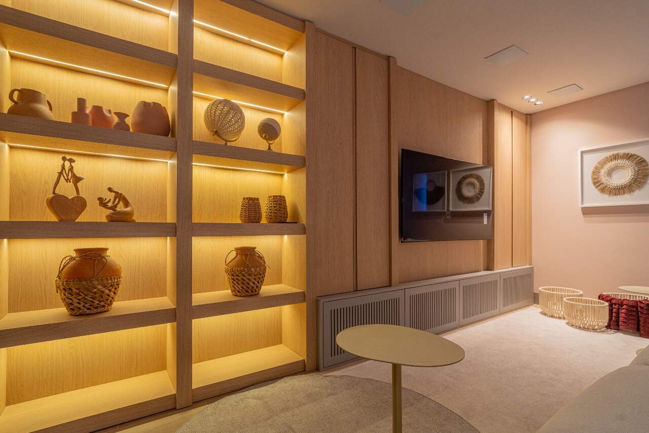 Para momentos de lazer, a casa conta com sala de cinema equipada com cinco caixas JBL, adega assinada pela arquiteta Sabrina Barros e uma piscina com vista privilegiada para o lago, perfeita para contemplar a natureza ao redor.